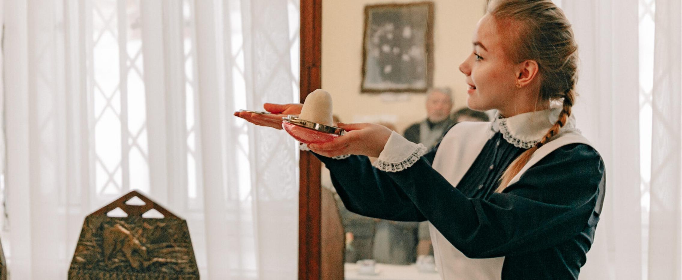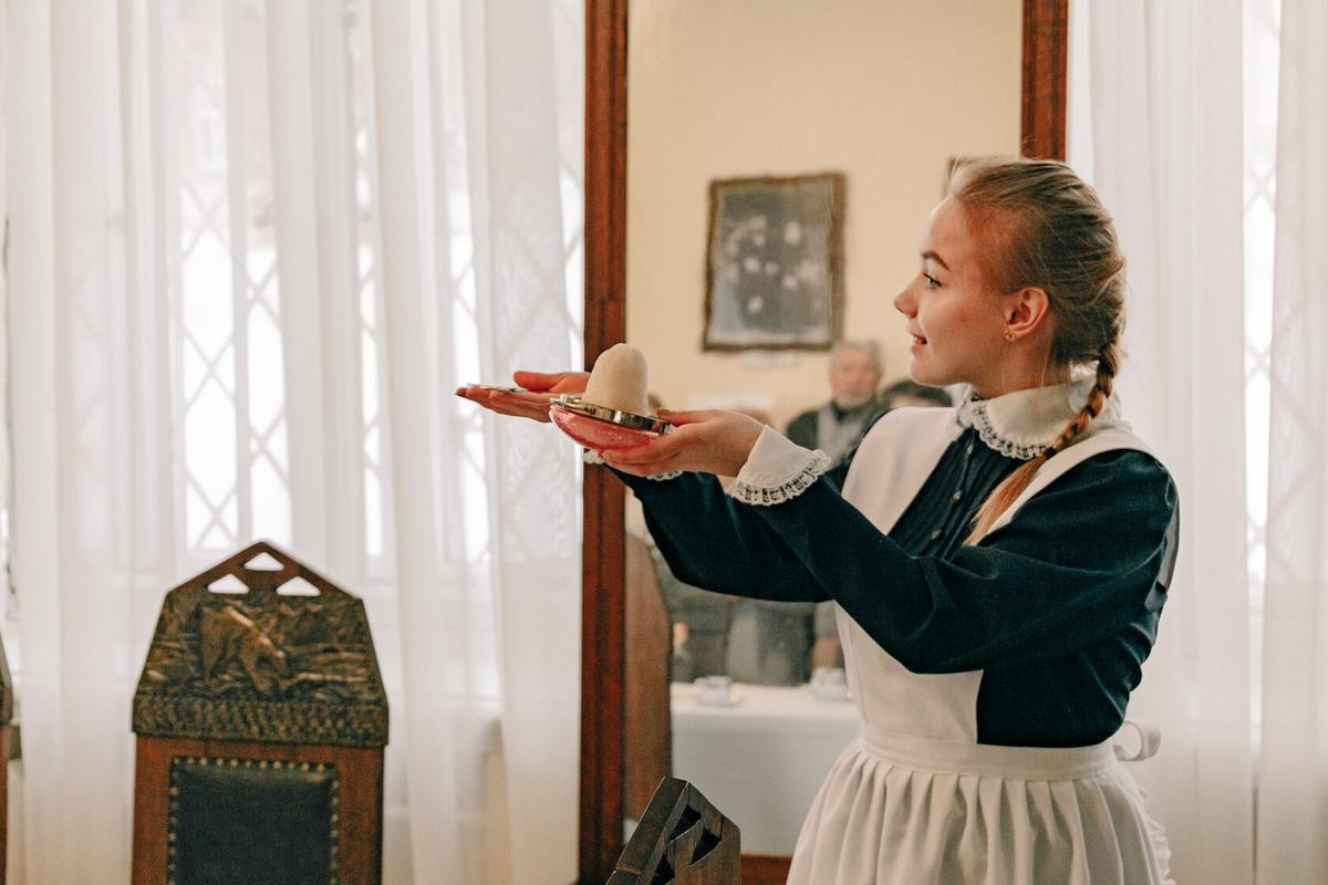 С хозяйкой усадьбы Александрой Андреевной Чайковской мы прогуляемся по комнатам хозяйского дома, возьмем на вооружение основы этикета 19 века, познакомимся с обычаями гостеприимства в семье Чайковских.