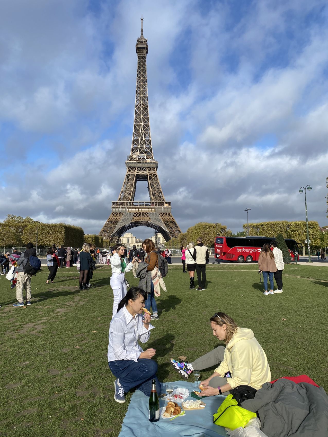 Возле смотровой площадки — пикник со свежим багетом, фермерскими сырами, ветчиной и вином