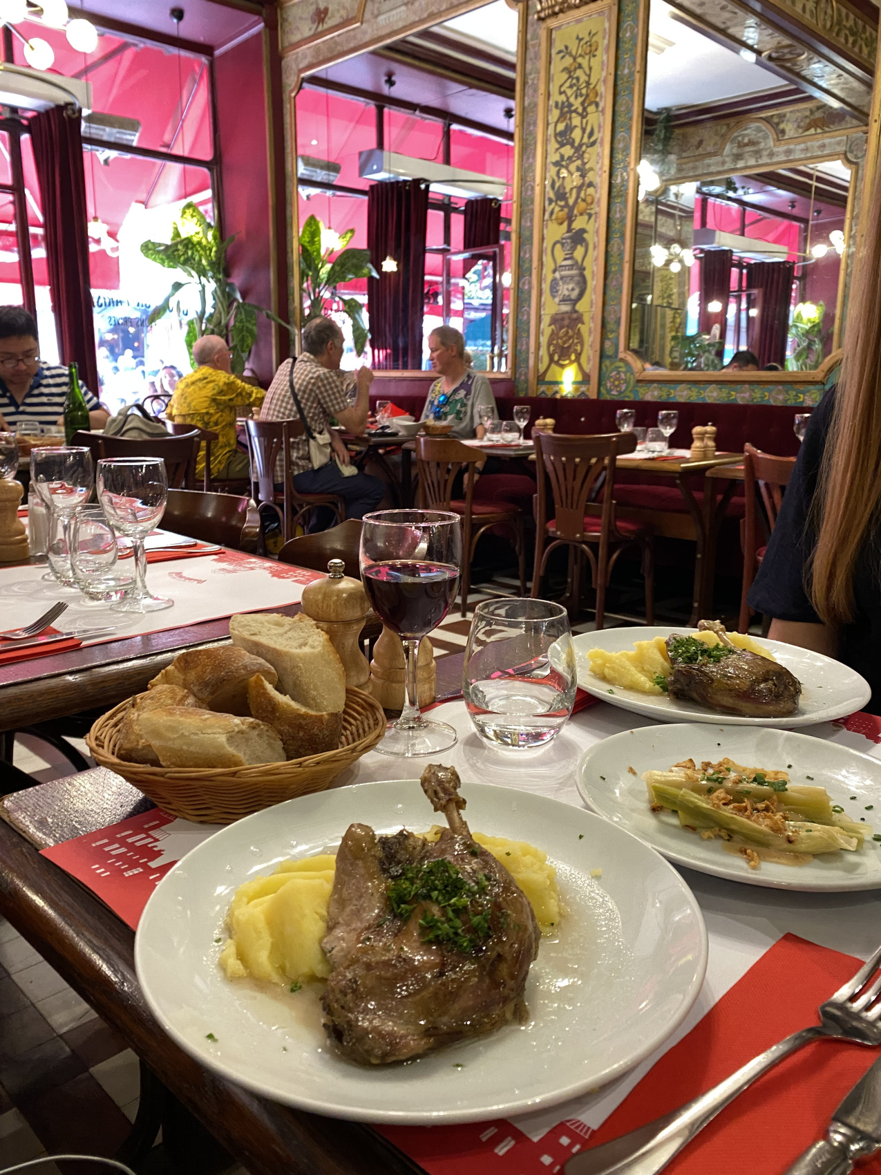 Вечером французский ужин в бистро или ресторане, где вам будет предложено блюдо на выбор, бокал вина, багет и вода