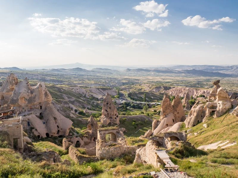 После завтрака отправляемся на экскурсию по Северной Каппадокии. Побываем в городе-крепости Учхисар: гид расскажет историю хеттской цивилизации и проведёт по переходам вырубленной в скале крепости.