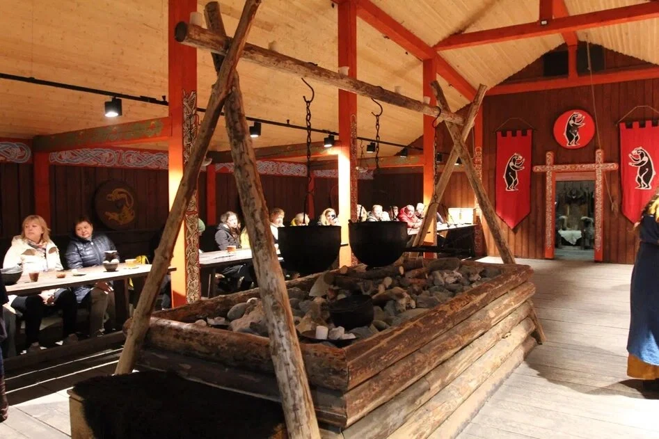 В 16:00 посетим комплекс «Бастион» — музей истории викингов. Вы прогуляетесь по воссозданному поселению древних мореходов: увидите их походный лагерь, кузницу, гончарную мастерскую, жилые дома и монетный двор. Вас пригласят в культовое место — капище — и покажут первую в России реконструкцию дома викингов с крышей в виде перевёрнутого драккара. Угостят «хмельным мёдом» или сбитнем — старинным безалкогольным напитком из мёда.