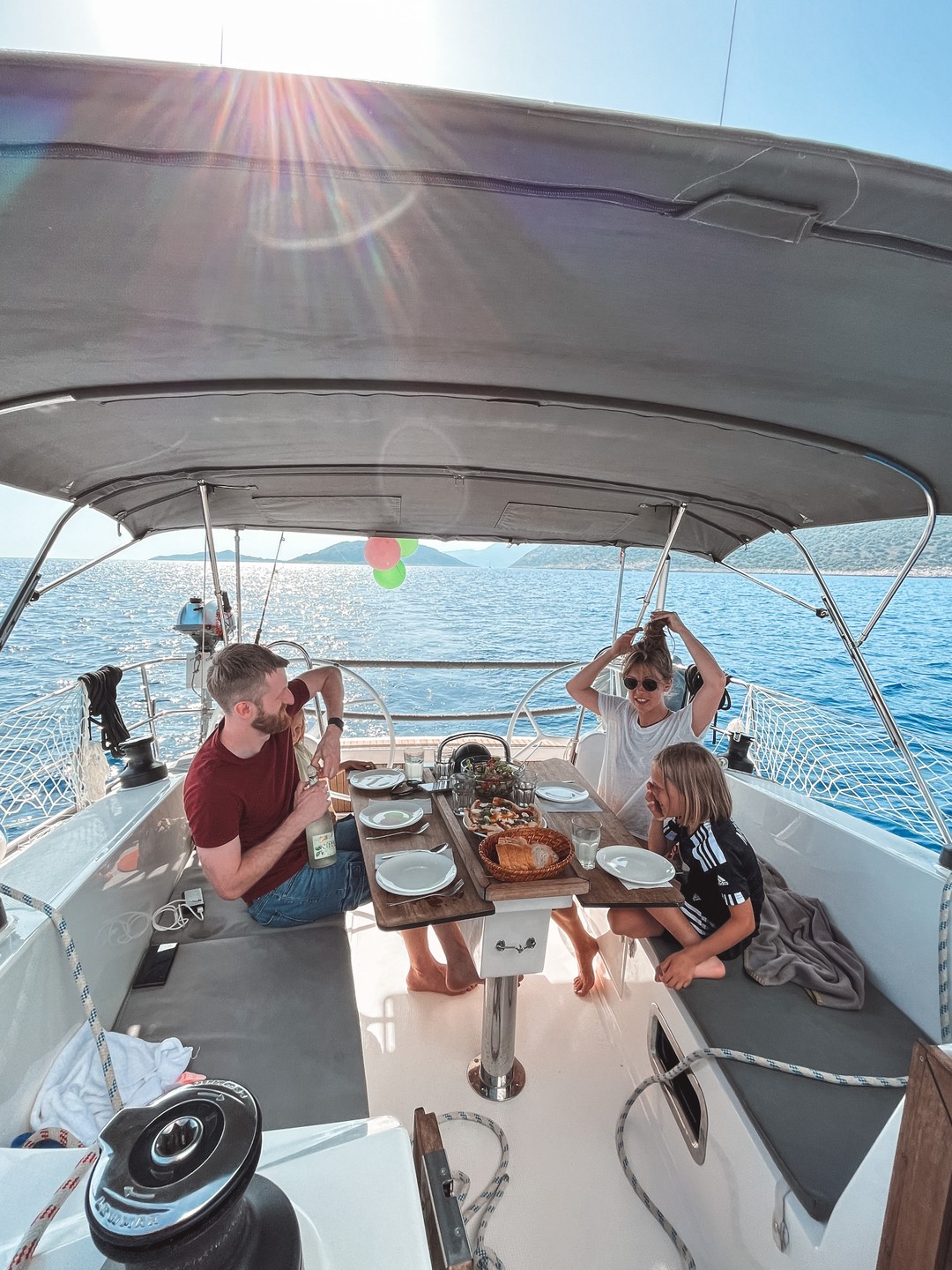 Программа на сегодня — отдых и только отдых. Никаких экскурсий, будем лежать на пляже в тени деревьев, фотографироваться и купаться. Пообедаем на борту яхты в живописной бухте под шум волн и крики чаек, а до 17:00 вернёмся в домашнюю марину, откуда и начинали путешествие.