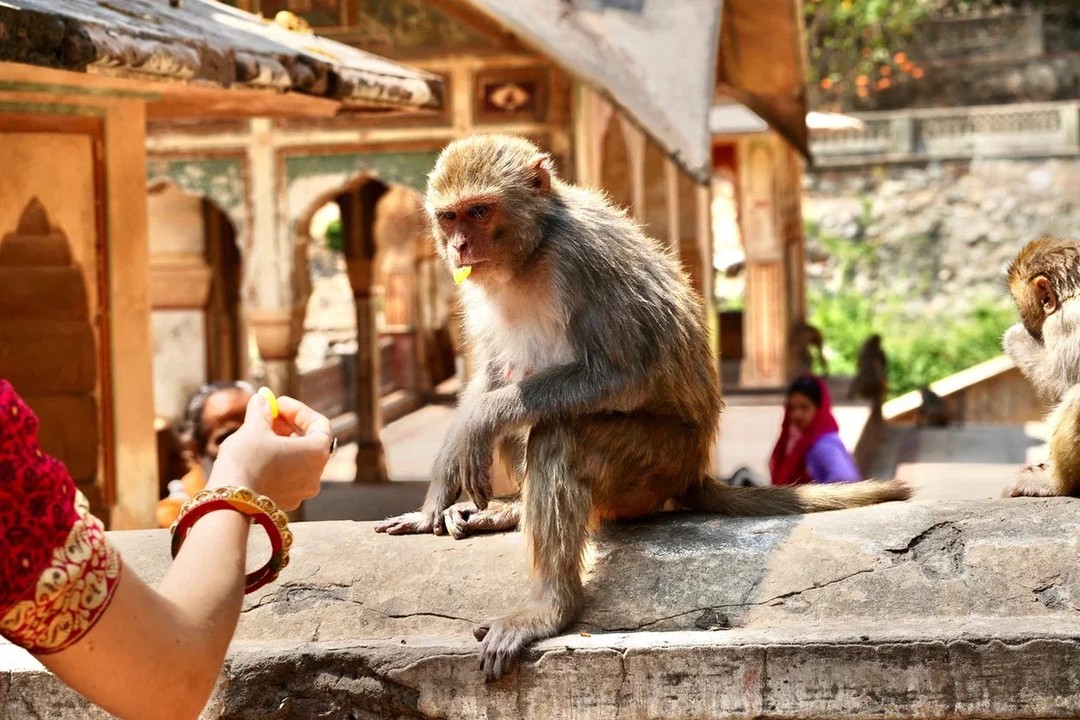 Утром поедем в храмовый комплекс Галта в горном ущелье. На территории живут любопытные обезьяны, которых можно покормить прямо с рук или сфотографироваться с ними.