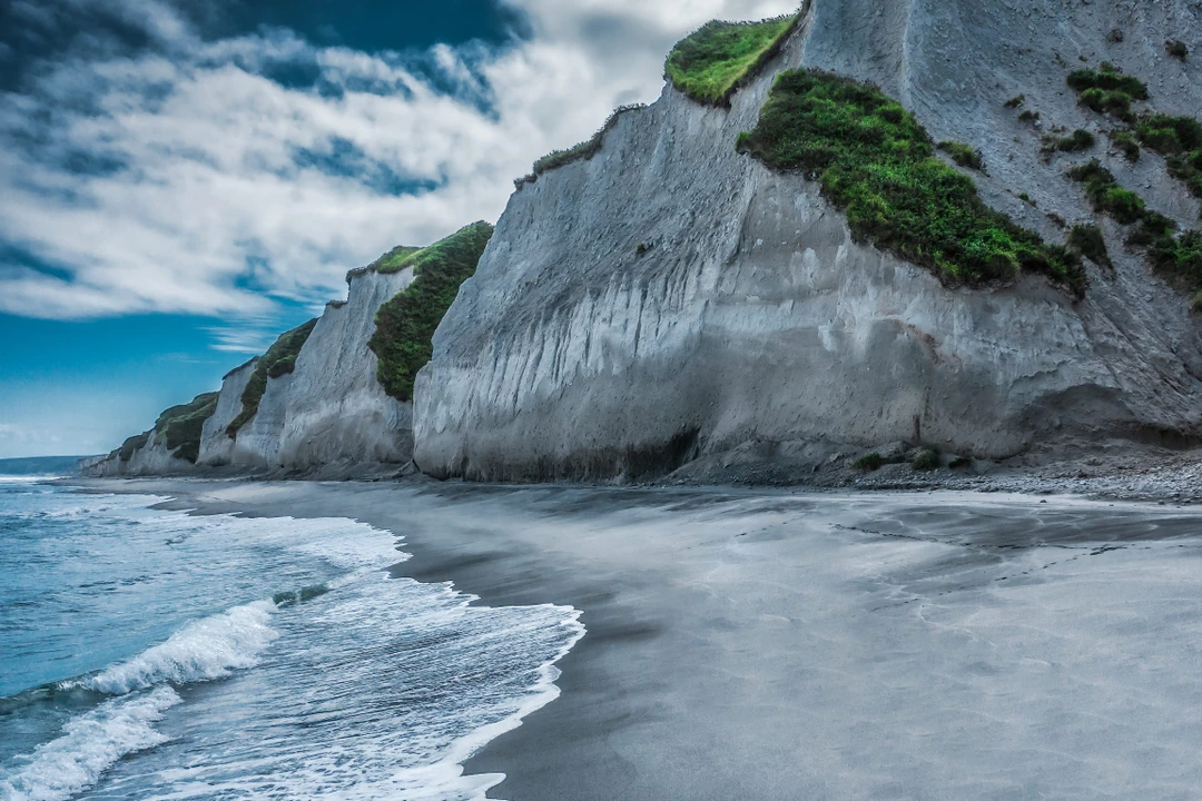 Затем поедем смотреть на причудливый рельеф Белых скал — они образовались во время извержения древних вулканов, когда стекающая лава при соприкосновении с морской водой вскипала пеной и тут же застывала. Полюбовавшись, продолжим путь до бухты Парусная, где увидим 15-метровый живописный водопад — здесь можно зайти за струи падающей воды и остаться сухим за шторой из ледяных брызг.