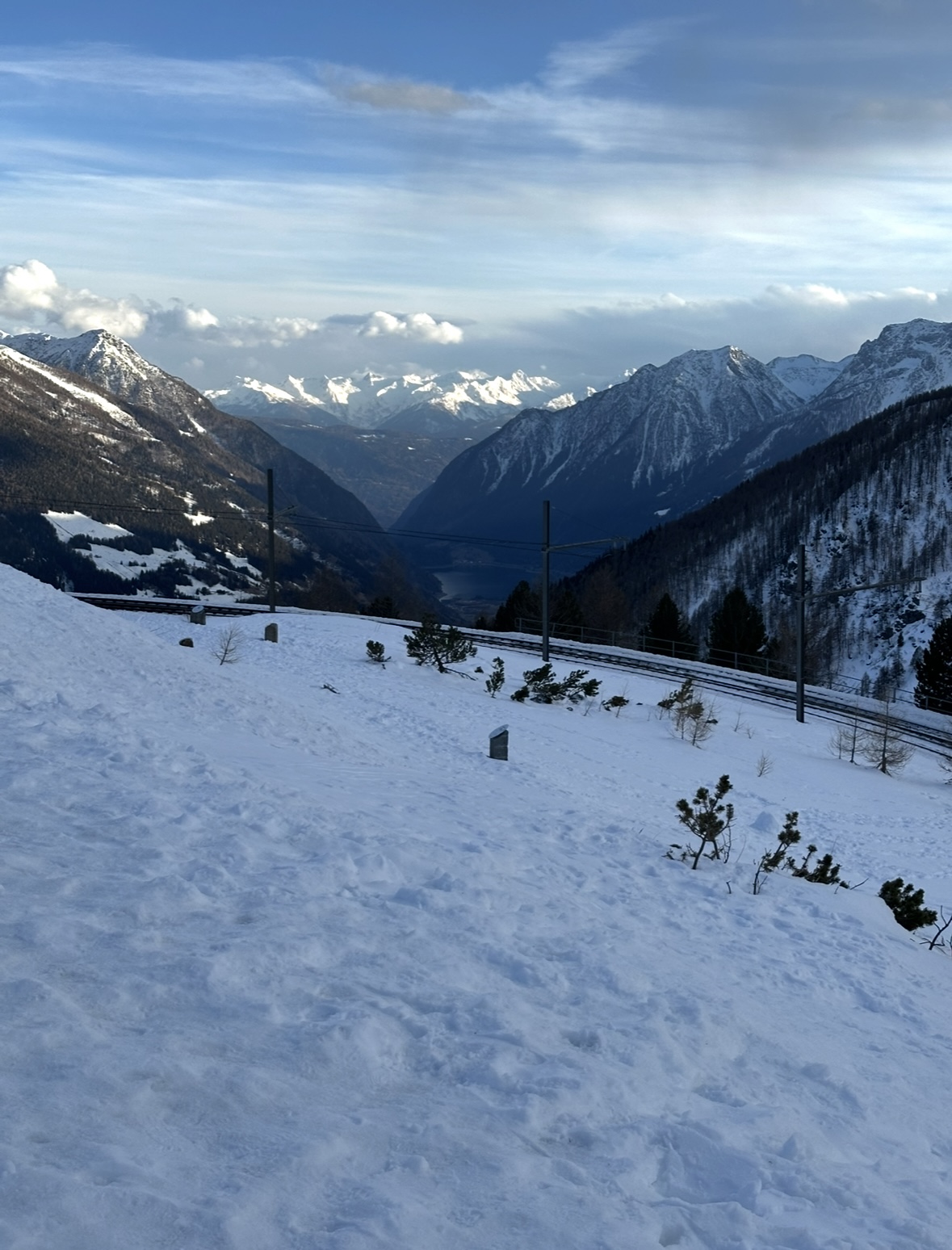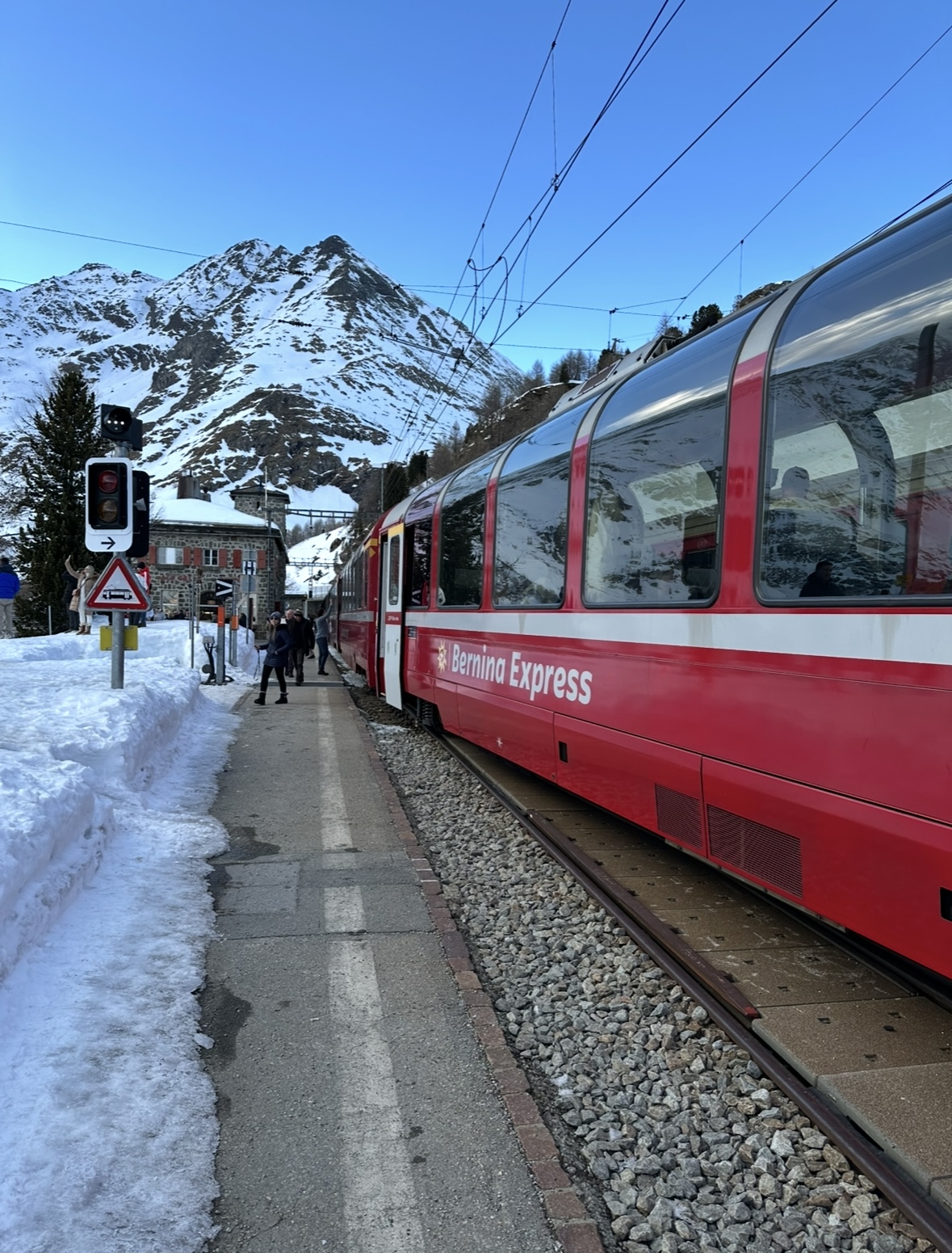 в 09:41 отправляемся на Бернина экспресс из тирано до Санкт- Моритц . Самый дорогой горнолыжный курорт Швейцарии, который дважды принимал олимпийские зимние игры, где зародились бобслей , скелетон, скачки на лошадях на льду