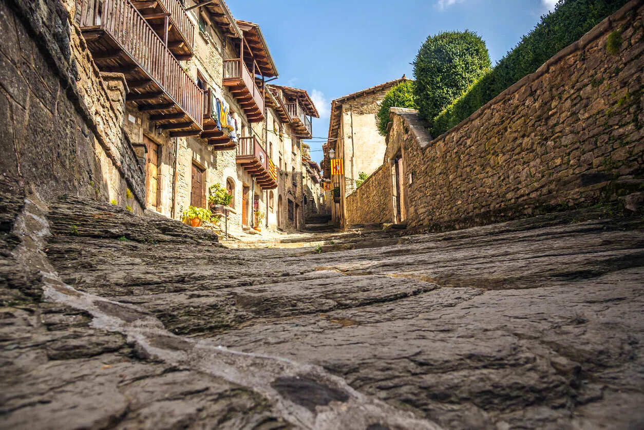 Затем мы отправимся в Рупит — один из самых красивых средневековых городков Каталонии. Узкие каменные улочки с застывшей лавой вместо асфальта, тряский подвесной мост и старинные дома сохраняют атмосферу прошлого. Здесь время течёт медленнее, и каждый поворот открывает новую картину — от уютных площадей до аутентичных фасадов с балконами, украшенными цветами.