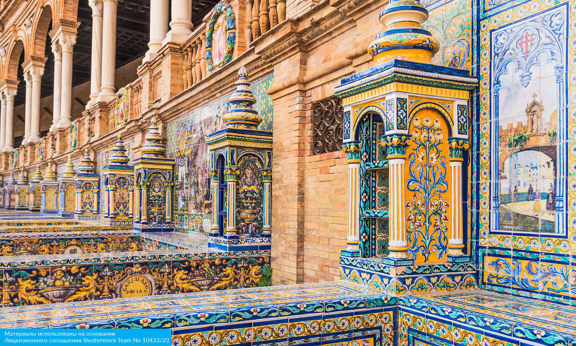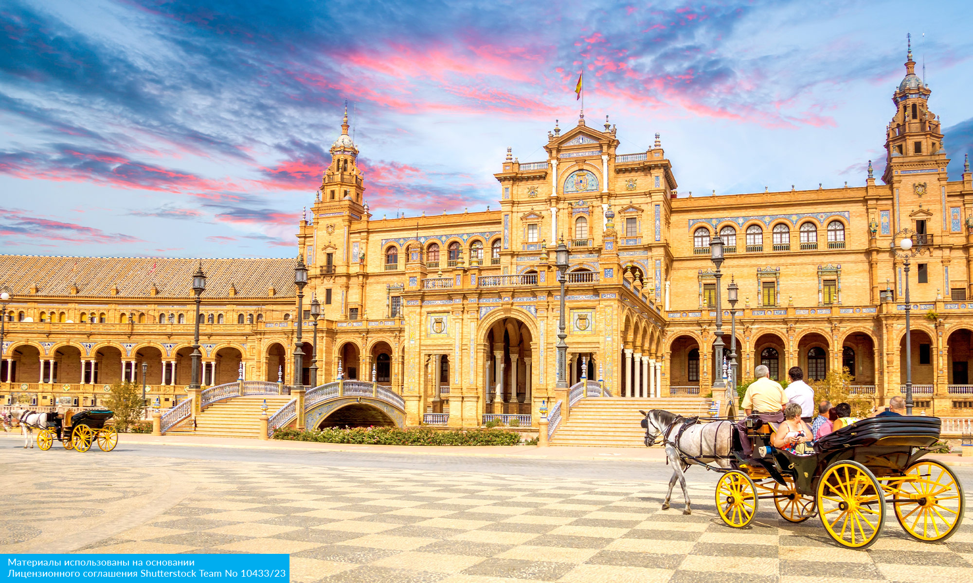 Вечером — первый взгляд на золотистые купола и величественные башни Севильи, залитые мягким закатным светом.