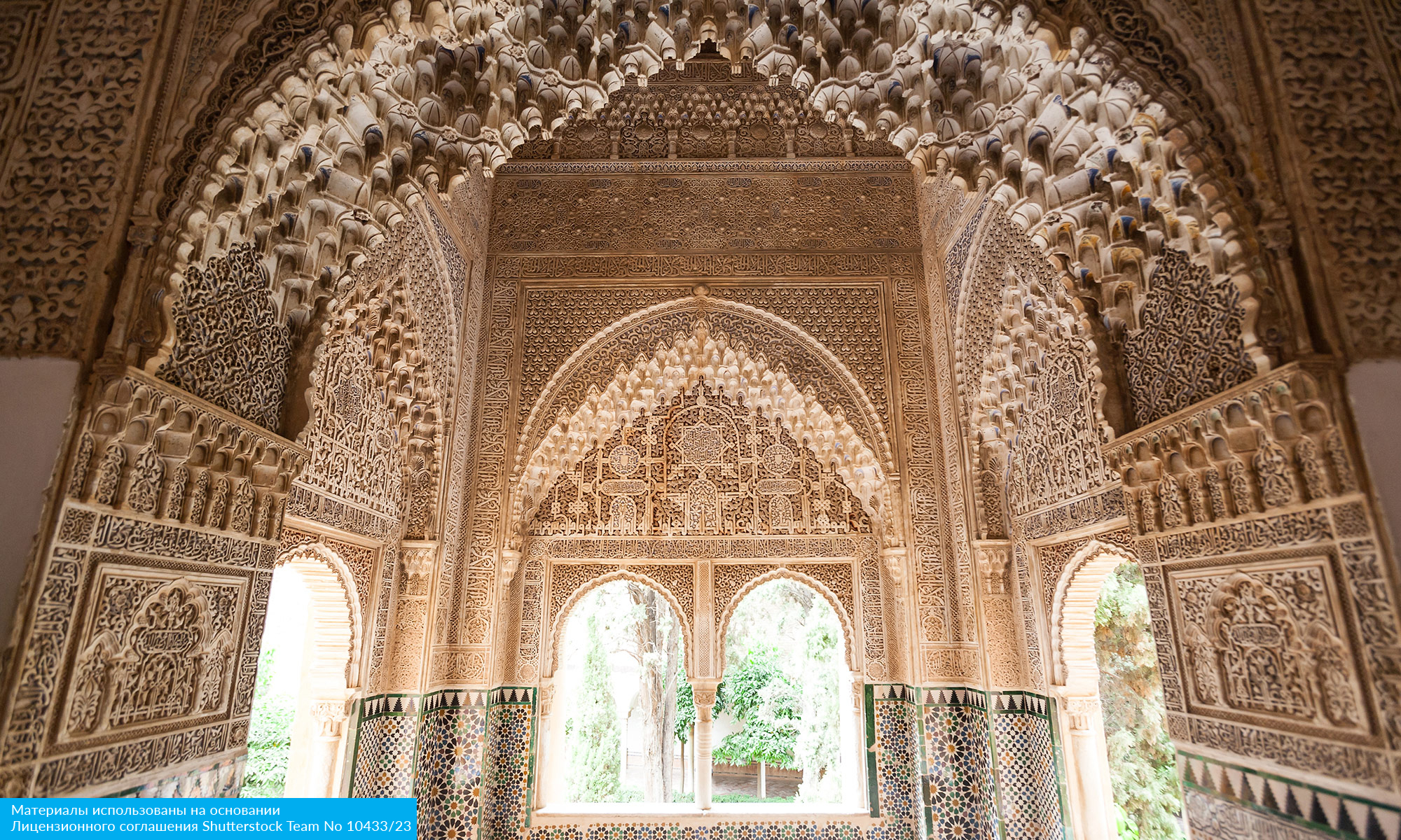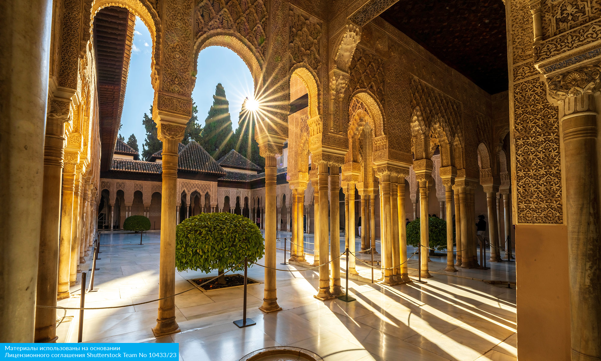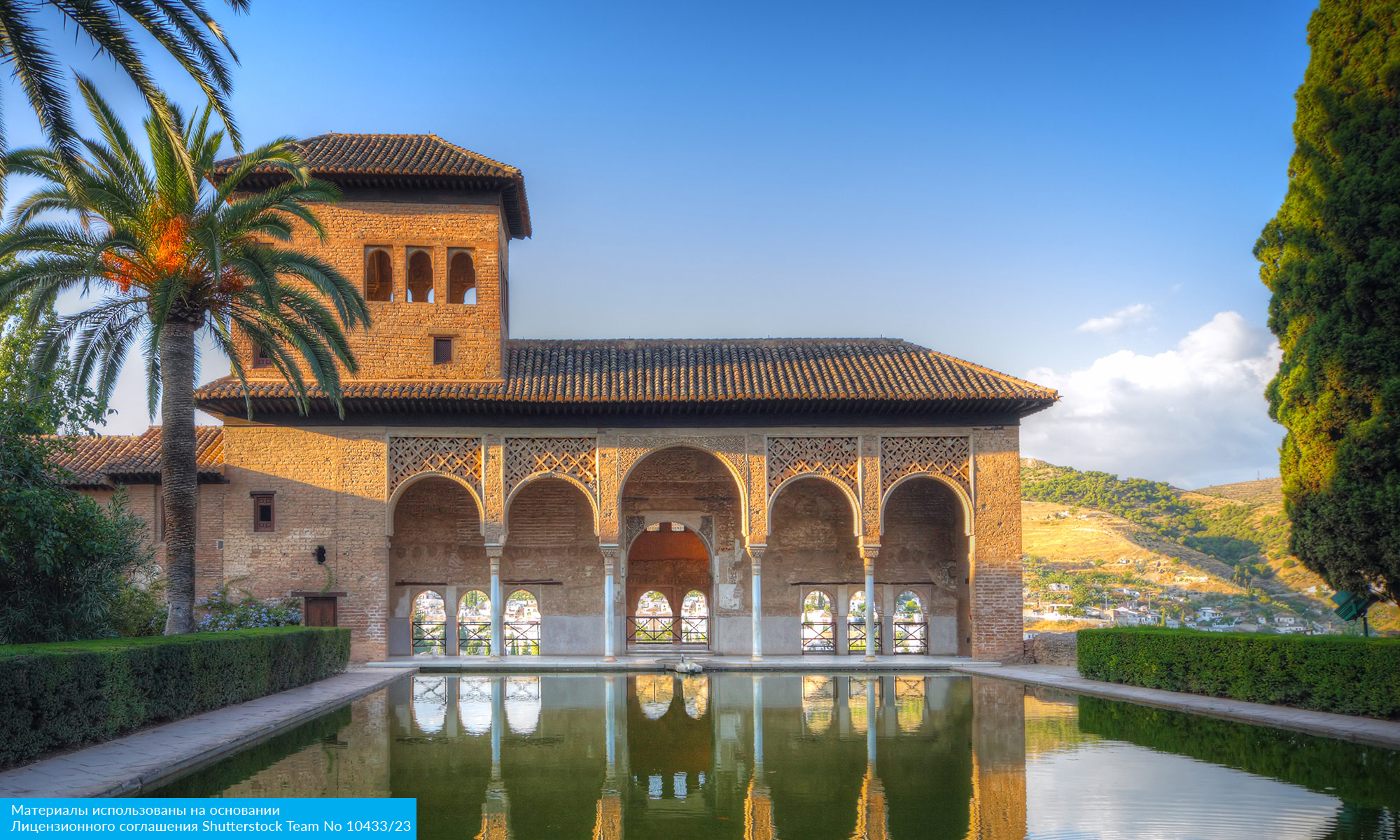 Альгамбра — жемчужина мавританской архитектуры, дворец, где журчат фонтаны, а изысканная резьба превращает стены в кружевные узоры.