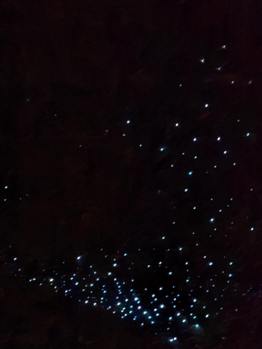 Пещеры Вайтомо — звездное небо из светлячков. Arachnocampa Luminosa, которых в Новой Зеландии обычно называют просто светлячками (glowworms) это разновидность грибных комариков. Такие комарики водятся в Новой Зеландии и в некоторых регионах Австралии, а вот вид Arachnocampa Luminosa эндемичен для Новой Зеландии. Именно светлячки в пещерах Уайтомо и создают то фантастическое зелено-голубое свечение, которое можно увидеть на всех фотографиях свечение, превращающее своды гротов в усыпанное мерцающими звездами ночное небо.