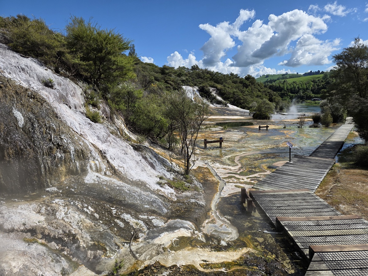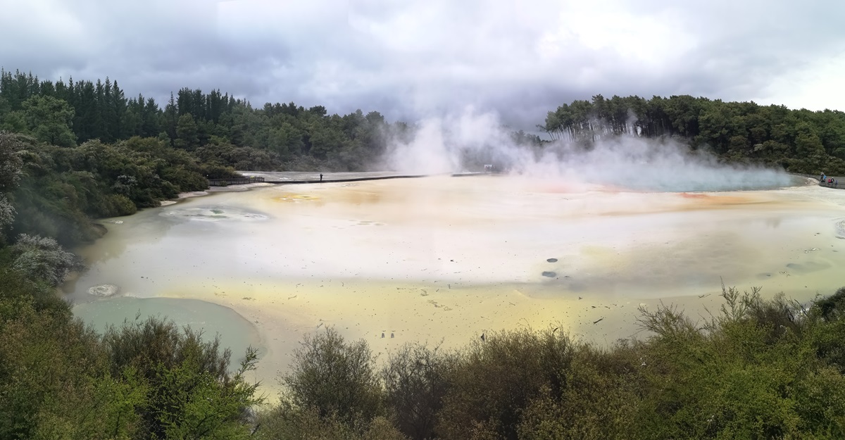 Вай-О-Тапу - это зона высокой геотермальной активности с множеством живописных горячих источников и гейзеров и один из самых известных и посещаемых геотермальных парков в Новой Зеландии.