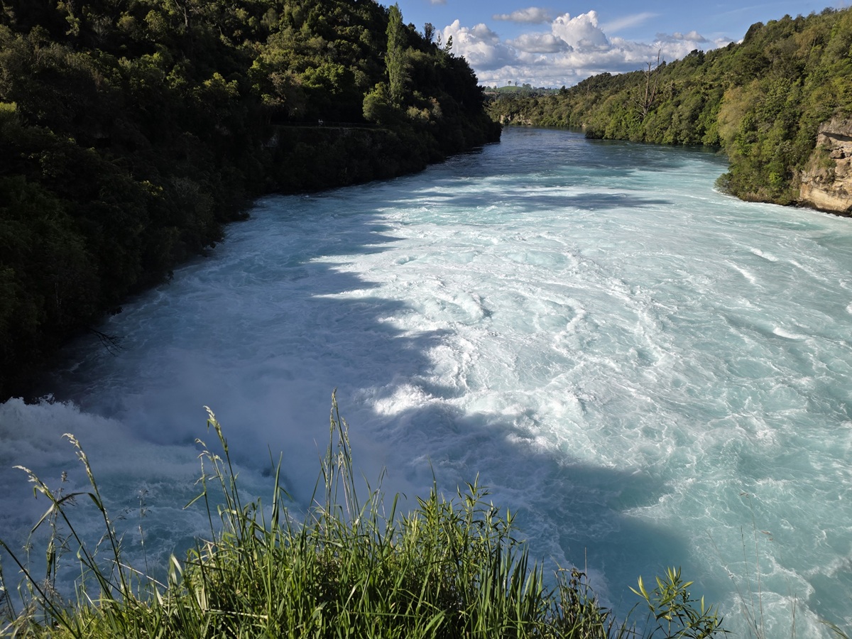 Водопад Хука. Huka falls - это целый каскад водопадов с бирюзовой водой на самой крупной реке Новой Зеландии - Уаикато. Возле него проложены тропинки и устроены смотровые площадки, позволяющие наслаждаться этим чудом природы с разных ракурсов.
