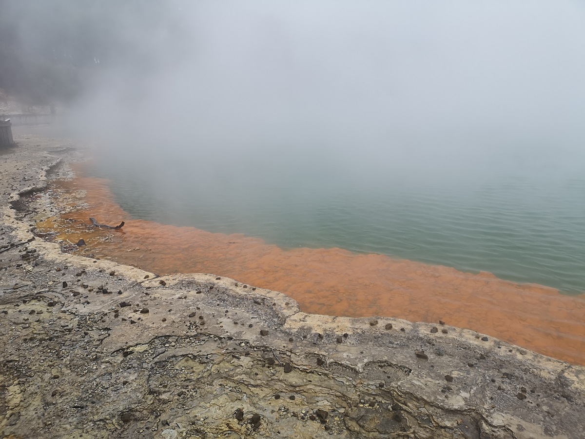 Оракей Корако - еще один геотермальный парк порадует нас своими космическими видами. Находится он в стороне от основных дорог и добираться до самых красот придется на кораблике через озеро Охакури. Кварцевые террасы, разноцветные известково-серные потоки, застывшие водопадом на неземном ландшафте, горячая сероводородная водичка... Поверьте, оно того стоит!