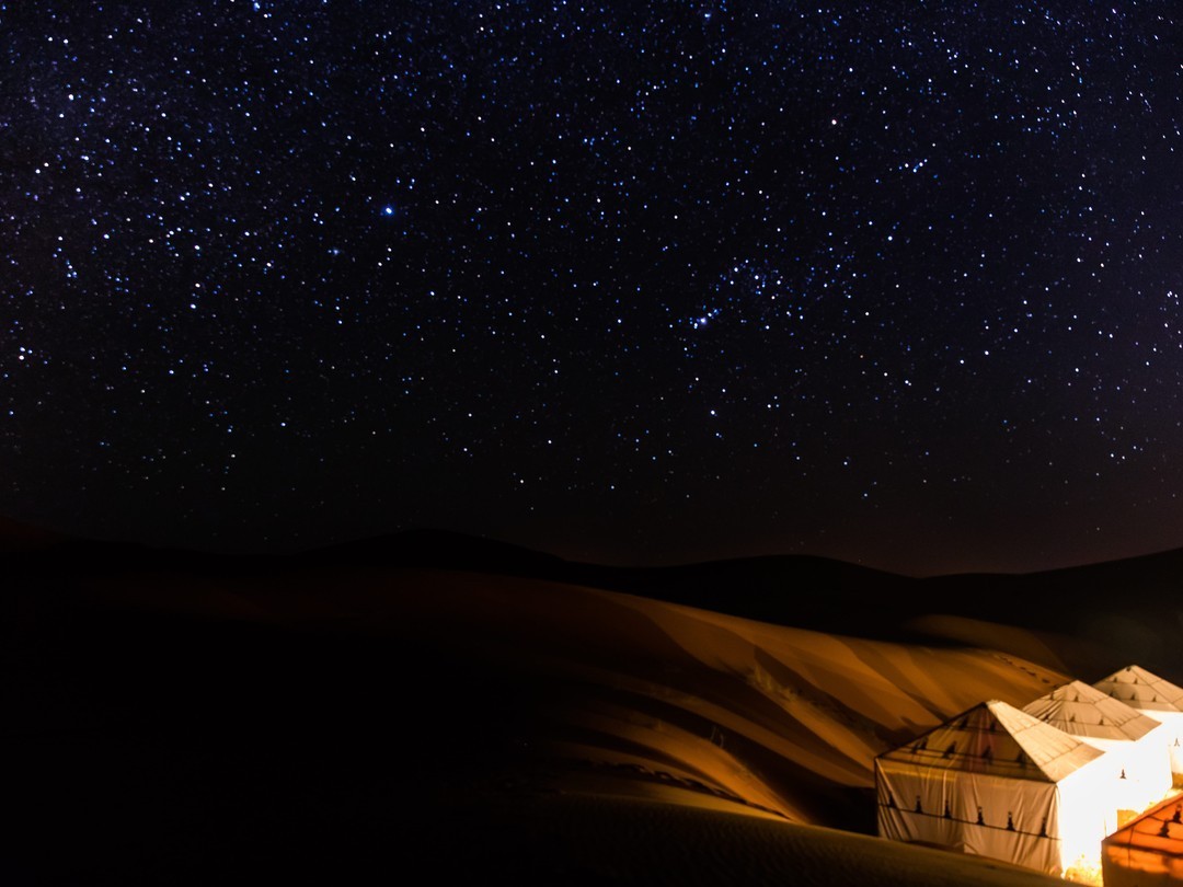 Разместимся в комфортабельном лагере со всеми удобствами на территории (санузел, душевая). Там поужинаем. Сегодня будет вечер берберского фольклора! А всем романтикам крайне рекомендуется отойти от лагеря на 100 метров и посмотреть на бескрайнее ночное небо, усыпанное мириадами звёзд. Кажется, что до Млечного пути можно дотянуться рукой!