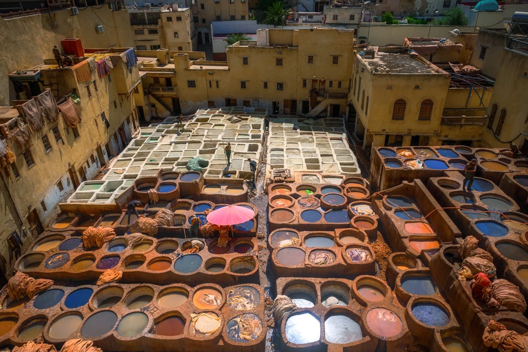Конечно, мы посетим самые старинные и известные красильни Шуара в Фесе. На входе каждый посетитель получает веточки мяты, чтобы смягчить запах производства кожаных изделий. Вход на смотровые площадки свободный и пролегает через магазины ремесленников.