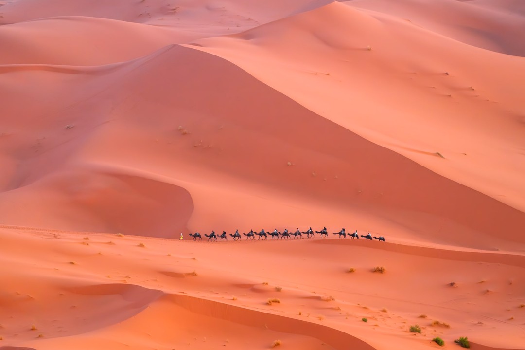 После завтрака оседлаем верблюдов, а вы сможете ощутить себя настоящим кочевником. Примерно через 1,5 часа наша караван доберётся до Мерзуги, где пересядем на микроавтобус.