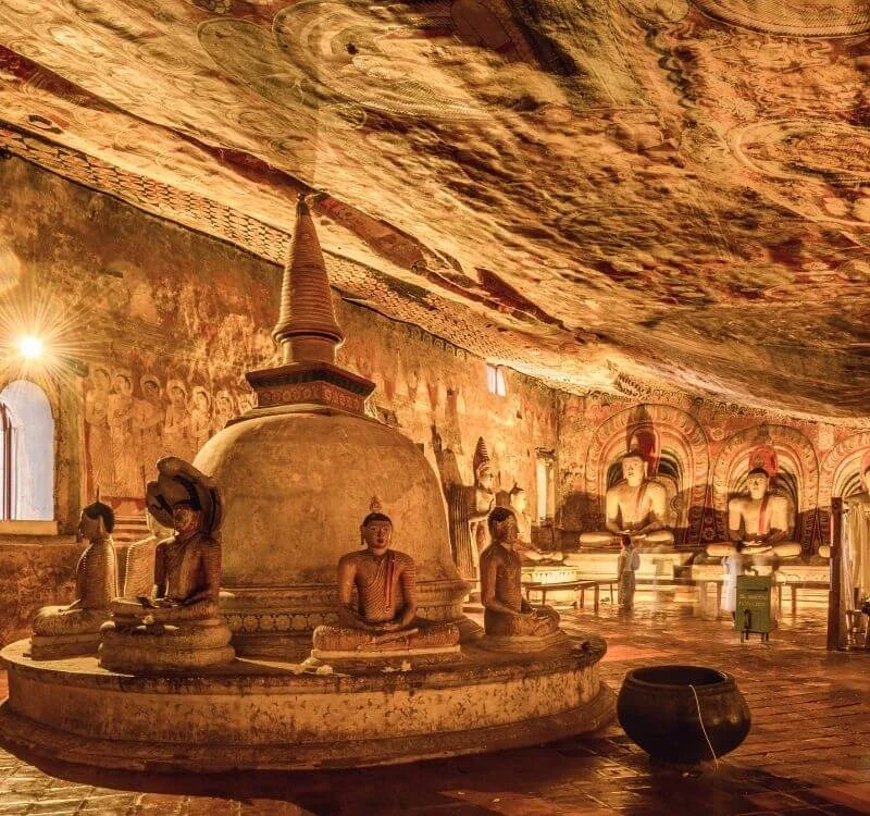 Спустимся в подземелья, в которых высечен пещерный храм Дамбулла с многочисленными статуями Будды. Заедем в аюрведический сад, где выращивают лекарственные растения и специи, и осмотрим богатую коллекцию Музея драгоценных камней.