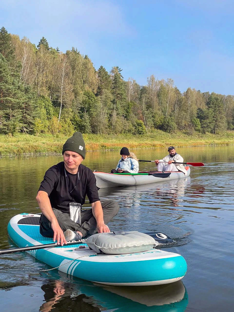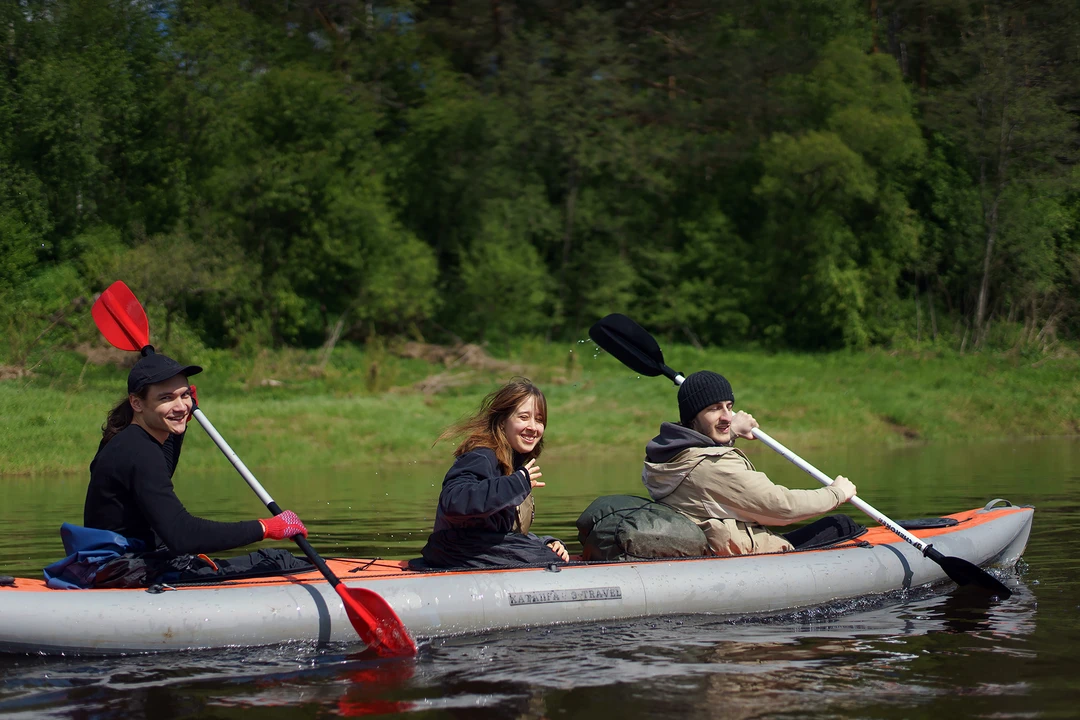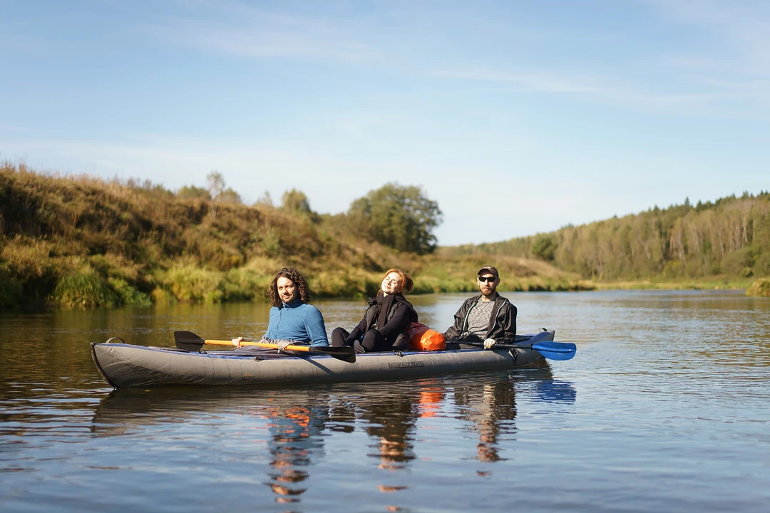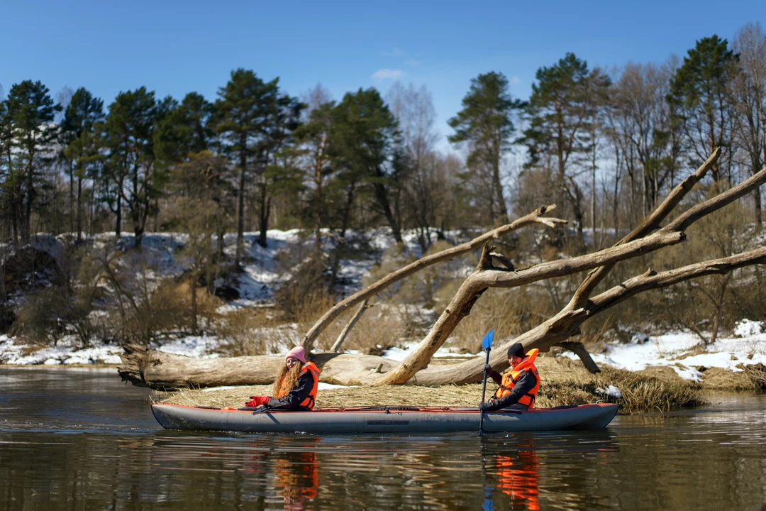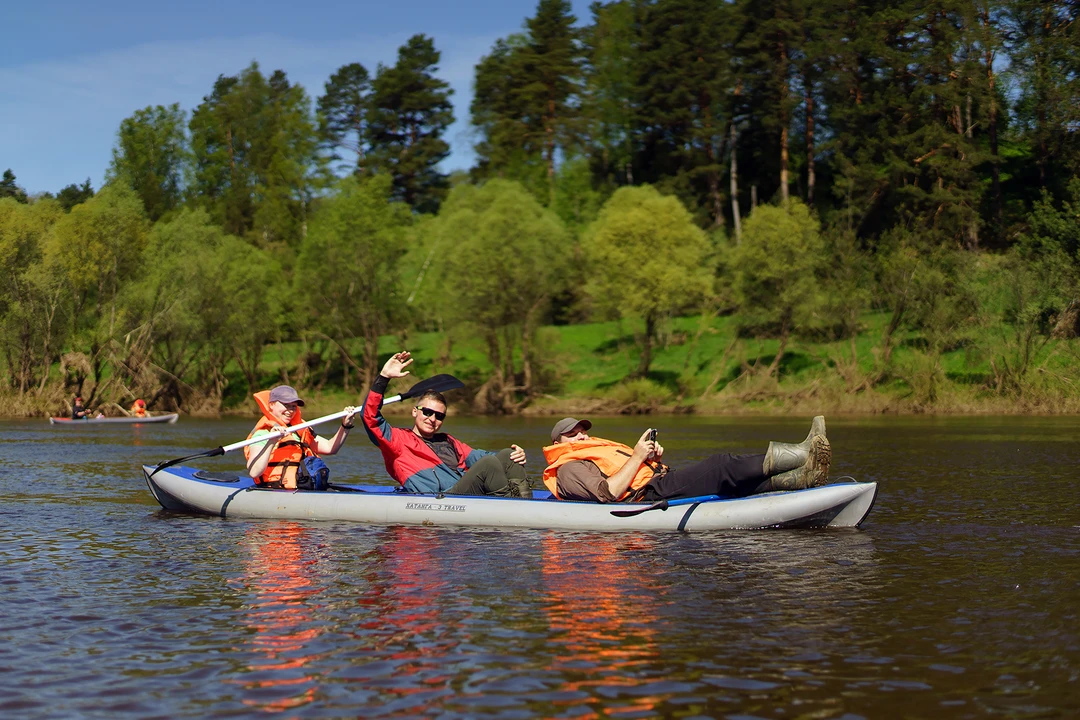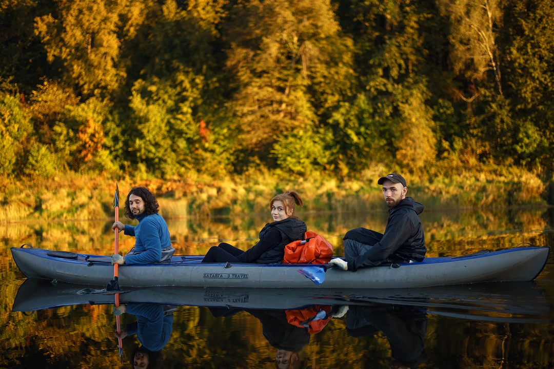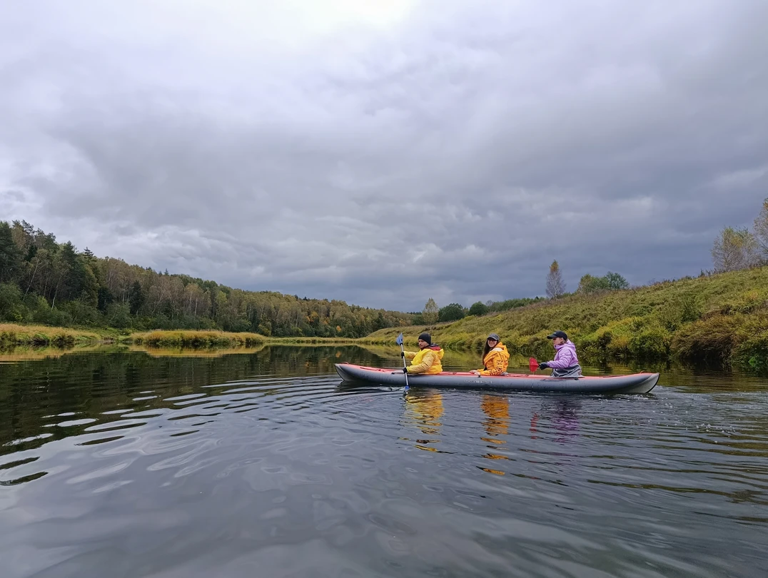 Сегодня пройдём на байдарках не более 8 км. Половину маршрута — по живописной травянистой реке Воре с чистой и прозрачной водой. Сможем рассмотреть дно, понаблюдать за рыбами и сделать эффектные фотографии среди заросших берегов и островков. Остановимся на пляже в месте, где Воря встречается с Угрой. Согреемся горячим куриным бульоном с бутербродами, чаем и кофе со сладостями. После обеда-перекуса пройдём оставшиеся километры по более широкой Угре.