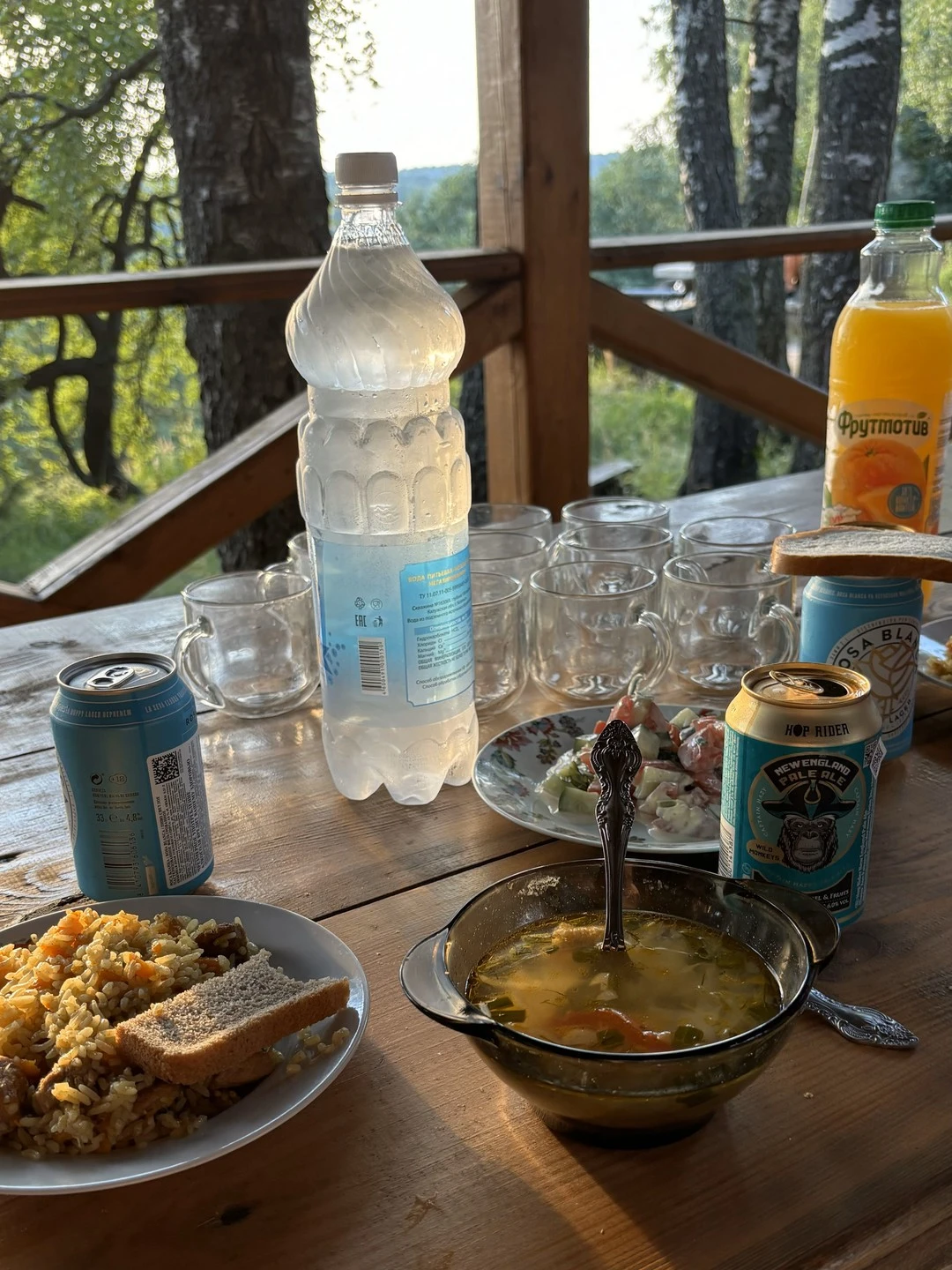 К 9:00 подадут завтрак в беседке или в гостиной. Насладимся деревенской едой и умиротворяющей атмосферой. Далее за нами приедут уже знакомые УАЗы и отвезут к Воре. В пути около 40 минут.