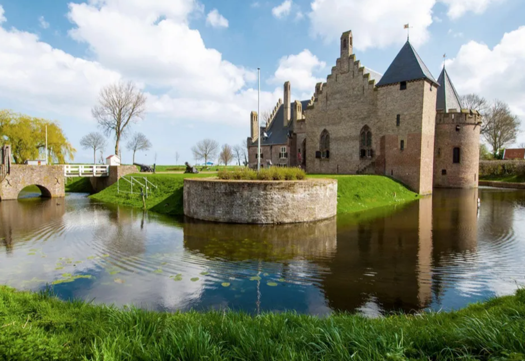 Переместимся в Медемблик, сохранивший оригинальную застройку 17-18 веков: ратушу, церкви, приют для сирот и замок Радбаут. В разное время его использовали как оборонительное сооружение, сцену для представлений, концертов и балов, роскошный дворец, а сейчас здесь работает музей.