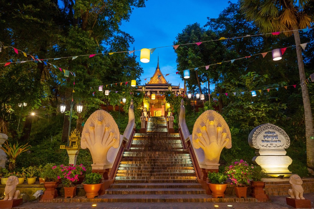 Посетим Королевский дворец с Тронным залом, где проходят коронации и официальные церемонии. Осмотрим Серебряную пагоду — королевский храм с хрустальными статуями Изумрудного Будды и Будды Матрейи, украшенной бриллиантами. Пол пагоды выложен 5000 серебряных плит, а стены отделаны итальянским мрамором.