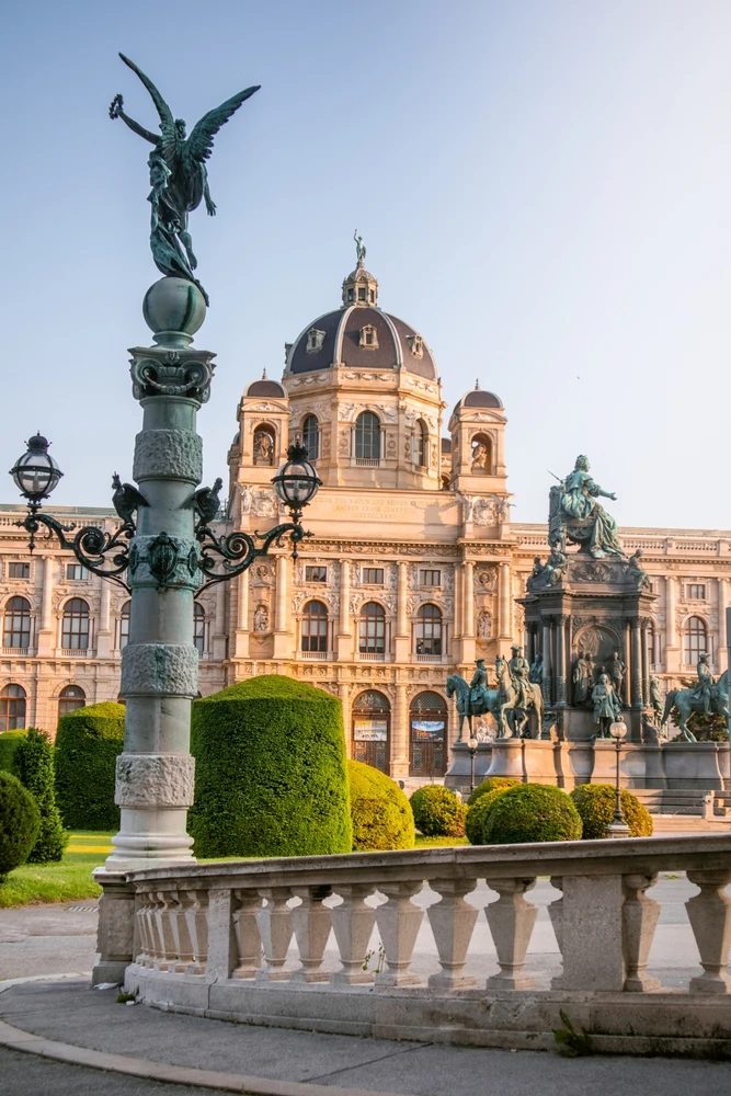 Следующий пункт нашего маршрута — Вена. Групповая обзорная экскурсия по Рингштрассе проследует к памятнику императрице Марии Терезии и включит много прекрасной архитектуры — парламент, ратушу, Бургтеатр, Вотивкирхе.